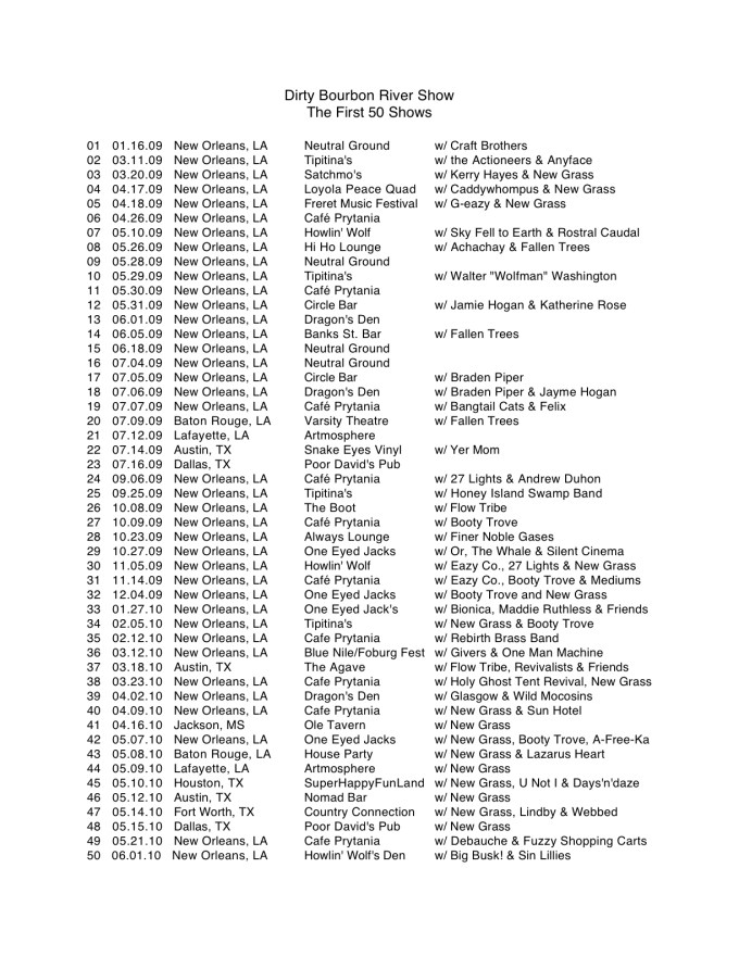 I apologize for not getting in touch with you sooner. It’s been a hectic two weeks. I definitely want to collaborate with The Dirty Bourbon River Show. Feel free to give me a shout this weekend! I’ll actually be at the Howlin’ Wolf next tuesday for your show. I’m going to do some samplings before hand. Either way we will get in touch by then. Thanks!