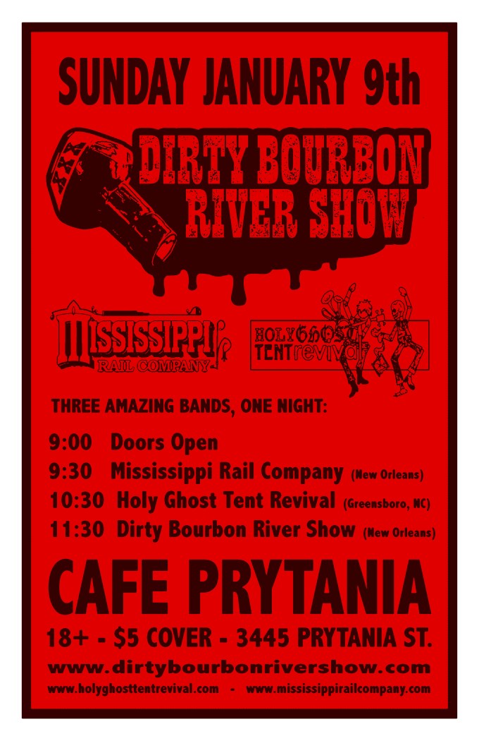 blues bog charlie bootsy Cafe Prytania carnival Dirty Bourbon River Show Folk Greensboro gypsy hank Holy Ghost Tent Revival january 9th jimmy williams john paul kevin live music mississippi rail company New Orleans noah adams patrick lesie Rock Roots ross montslinger sam shaheim stephen mcmurray sunday travers geoffry wane mitchell