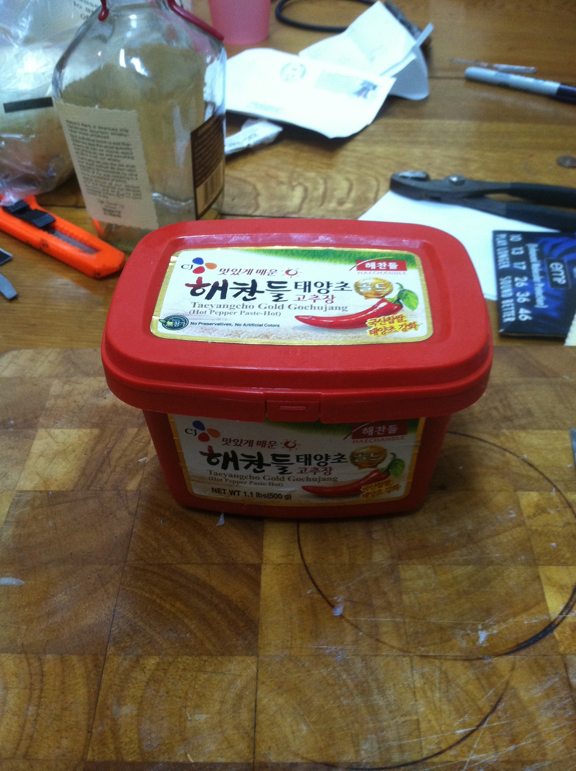 1 – tub of gochujang (Korean sweet/hot chili paste)