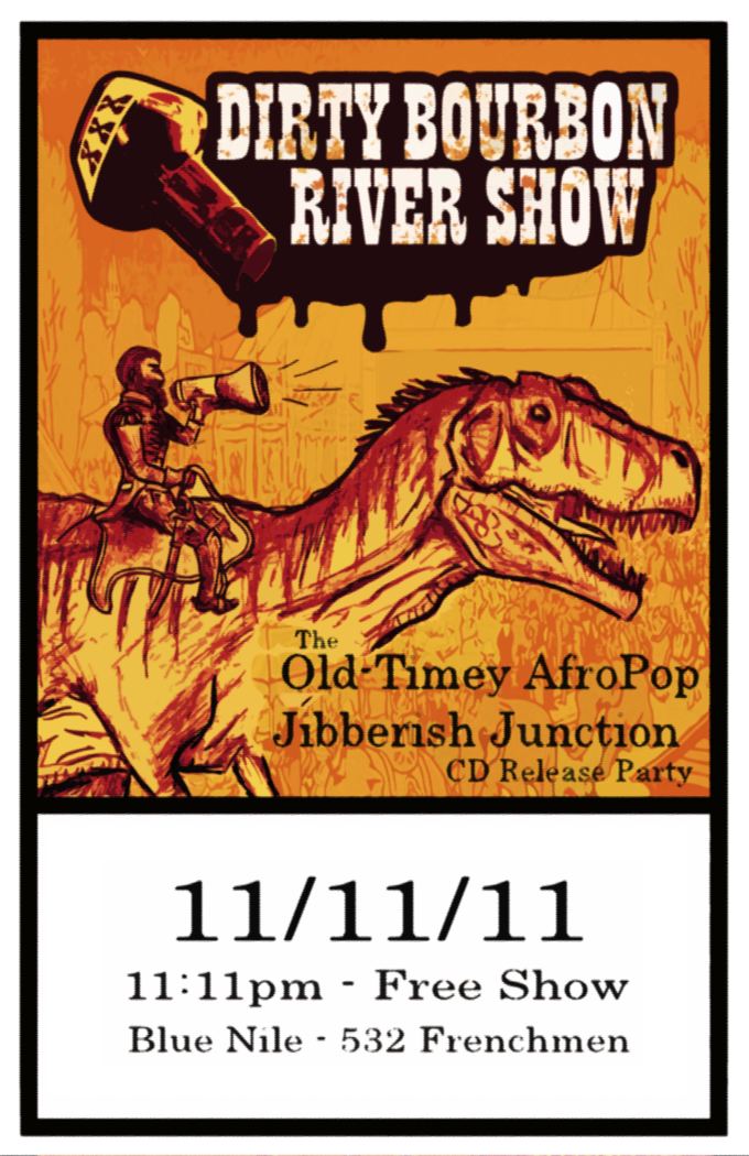 11:11am The Dirty Bourbon River Show’s 4th studio album – the “Old-Timey AfroPop Jibberish Junction” – will be released to the world, free for all to download, right here: http://dbrs.bandcamp.com/album/the-old-timey-afropop-jibberish-junction