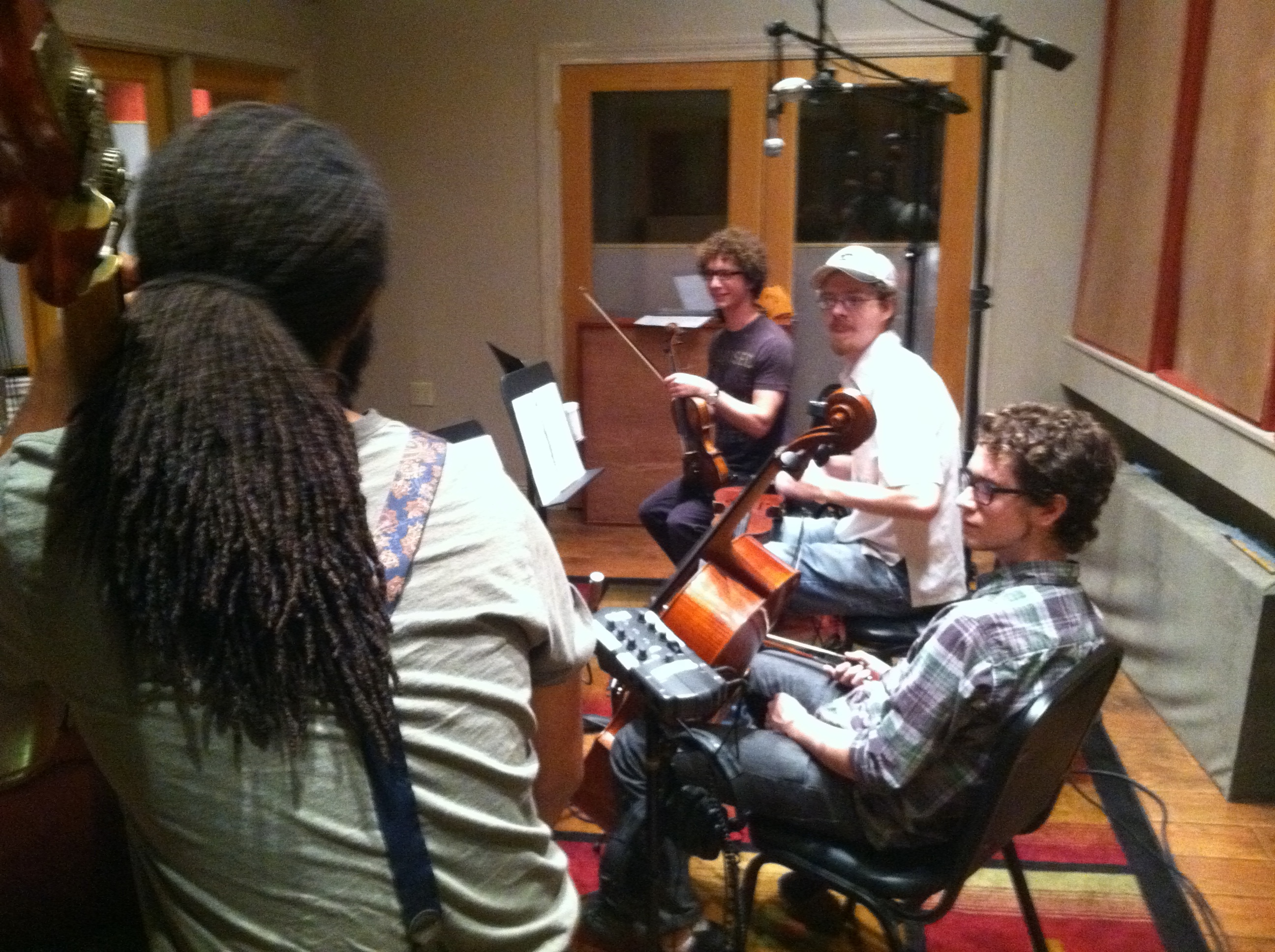 We have strings! Today we invited my old orchestra buddies James Hausmann, Sam Craft and Jack Craft to record some overdubs. This session was incredibly fun. The string parts sound fantastic. This is going to be a great record.
