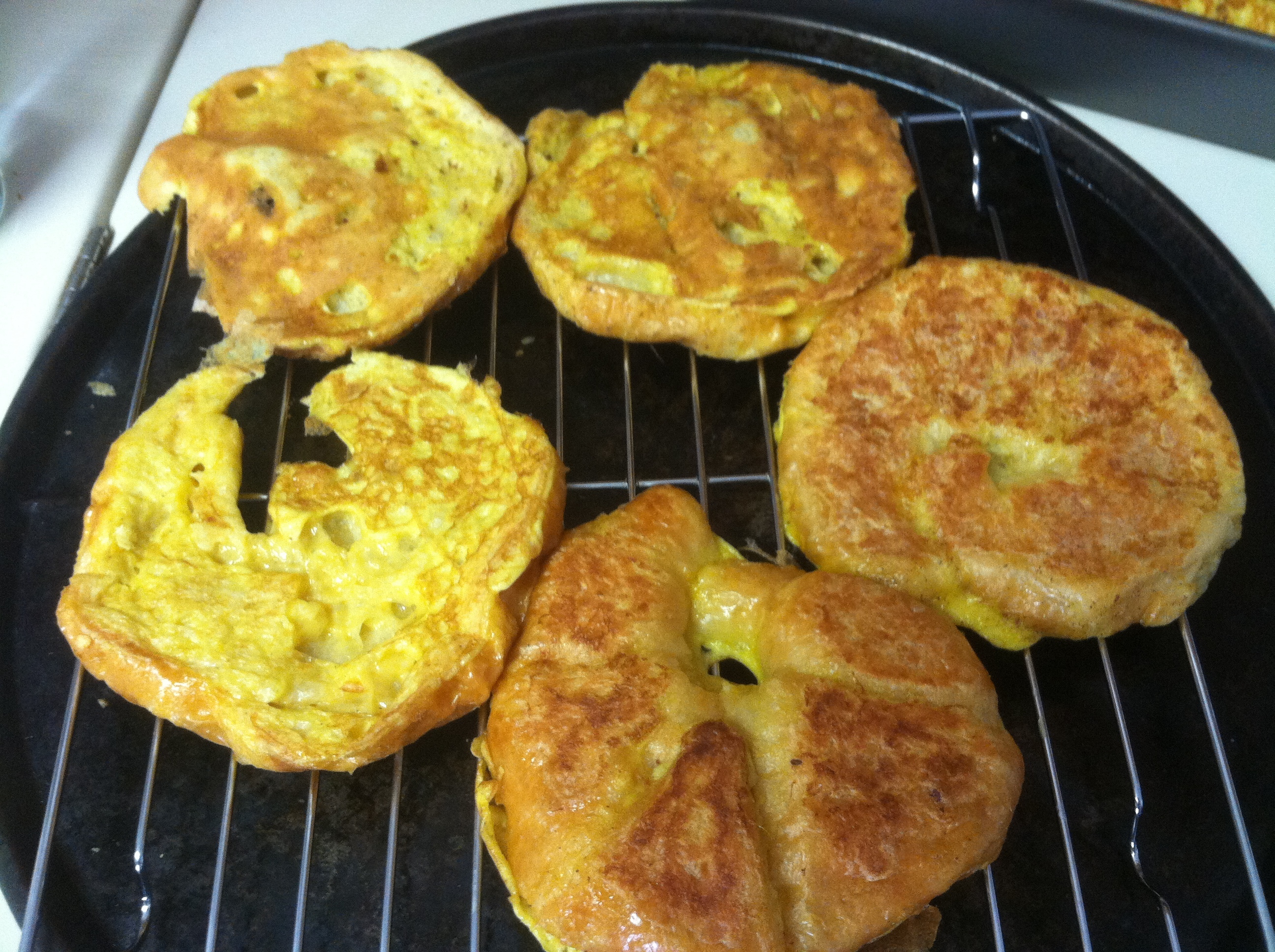 Beat together eggs in a large bowl. While continuously stirring, add heavy whipping cream, syrup, cinnamon, and vanilla extract. Once combined set aside.