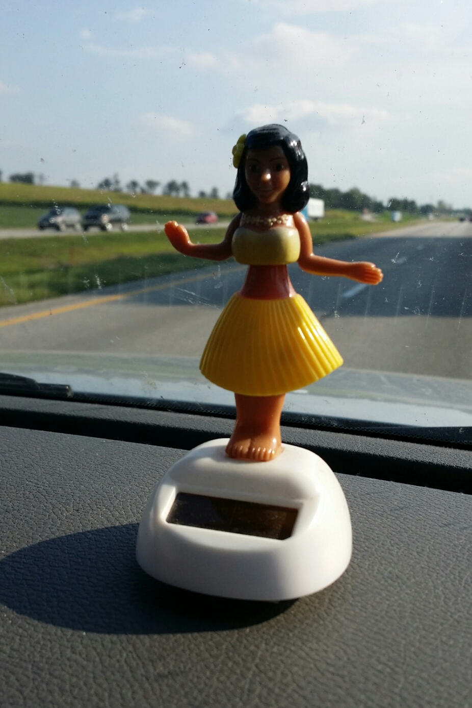 We start to see the Hula Girl herself entering into American iconoclasm as early as the 1900’s as a symbol of tourism in Hawaii. Then in the 1920’s and 30s the earliest dolls begin to surface, usually made of bisque, or redware – a claylike material. In the 1950’s we start to see what is closest to the modern version – plastic – fauxgrass skirt, often holding a ukulele or doing the hulu hand thing. The large amount of American soldiers in and out of Hawaii during WWII helped spread her popularity stateside. Then surfer kids and beach bums in Cali brought her into national light, and thus the Dashboard Hulu Girl became the American pop star that she is today.