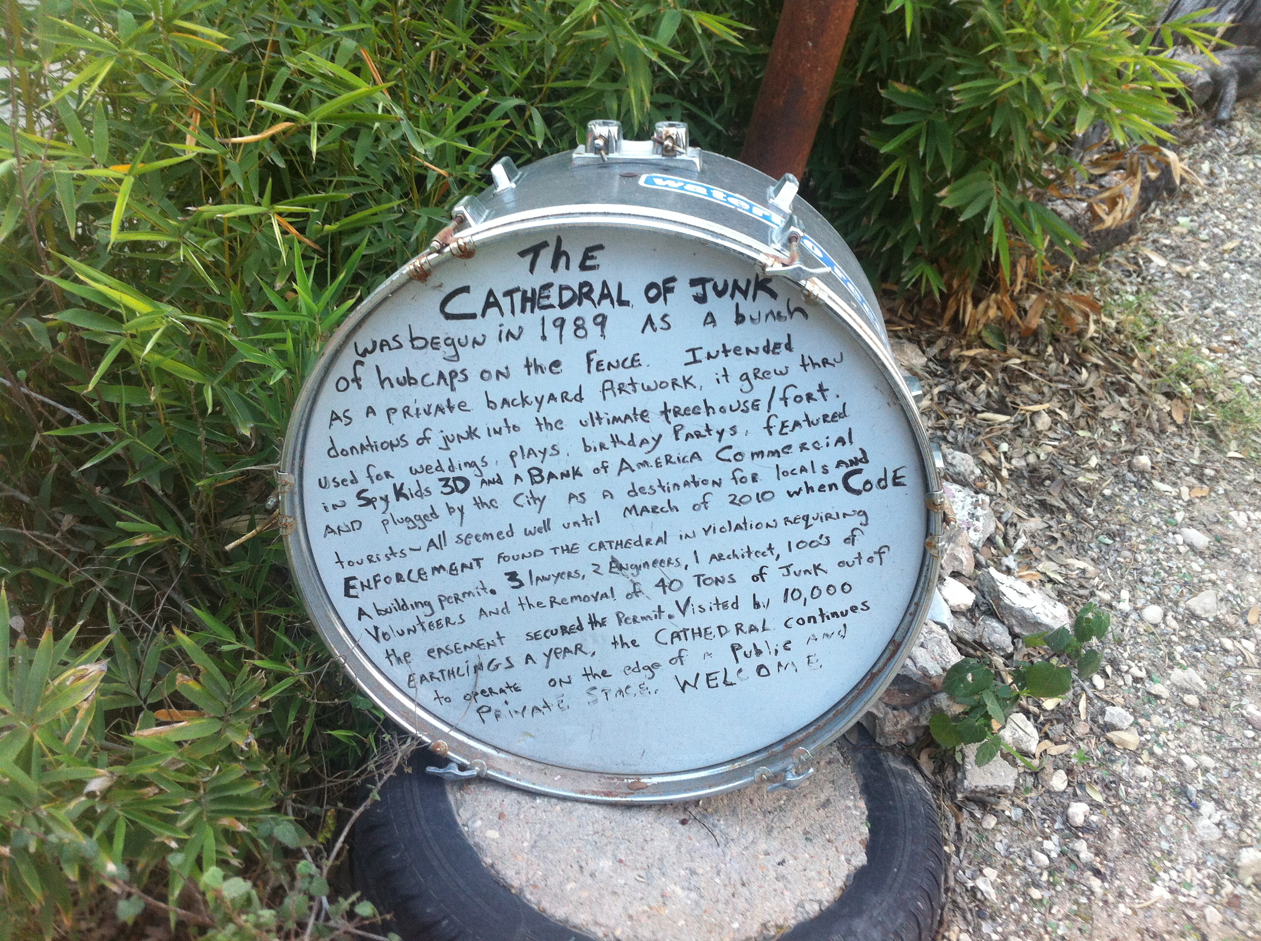 Started by Vince Hannemann in his own backyard in 1988, the Cathedral boasts 60+ tons of carefully arranged and compiled trash of all sorts. It’s been sustained by the donations from admirers around the world, and is one of the coolest little grassroots, major scale art projects I’ve seen. Below are some pics from our last visit to this testament to a man’s dedication to a vision!