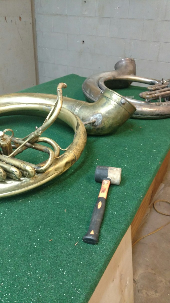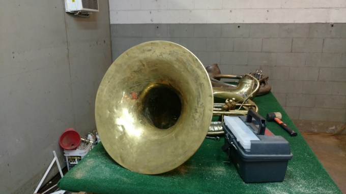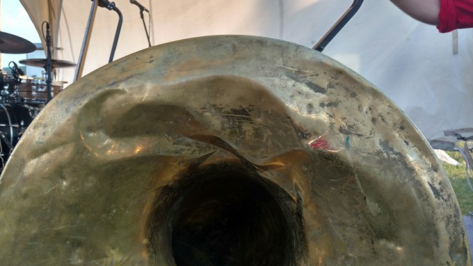 Suzy got blown off stage by a strong gust of wind in Crested Butte, CO and she landed on her bell. It really sucked, but it could have been much worse.We had a few days off back home so I got my horn fixed by Stafford Agee, trombonist for Rebirth Brass Band and an excellent human being. I can’t thank him enough for taking time out of his very busy schedule to help make Suzy whole again.
